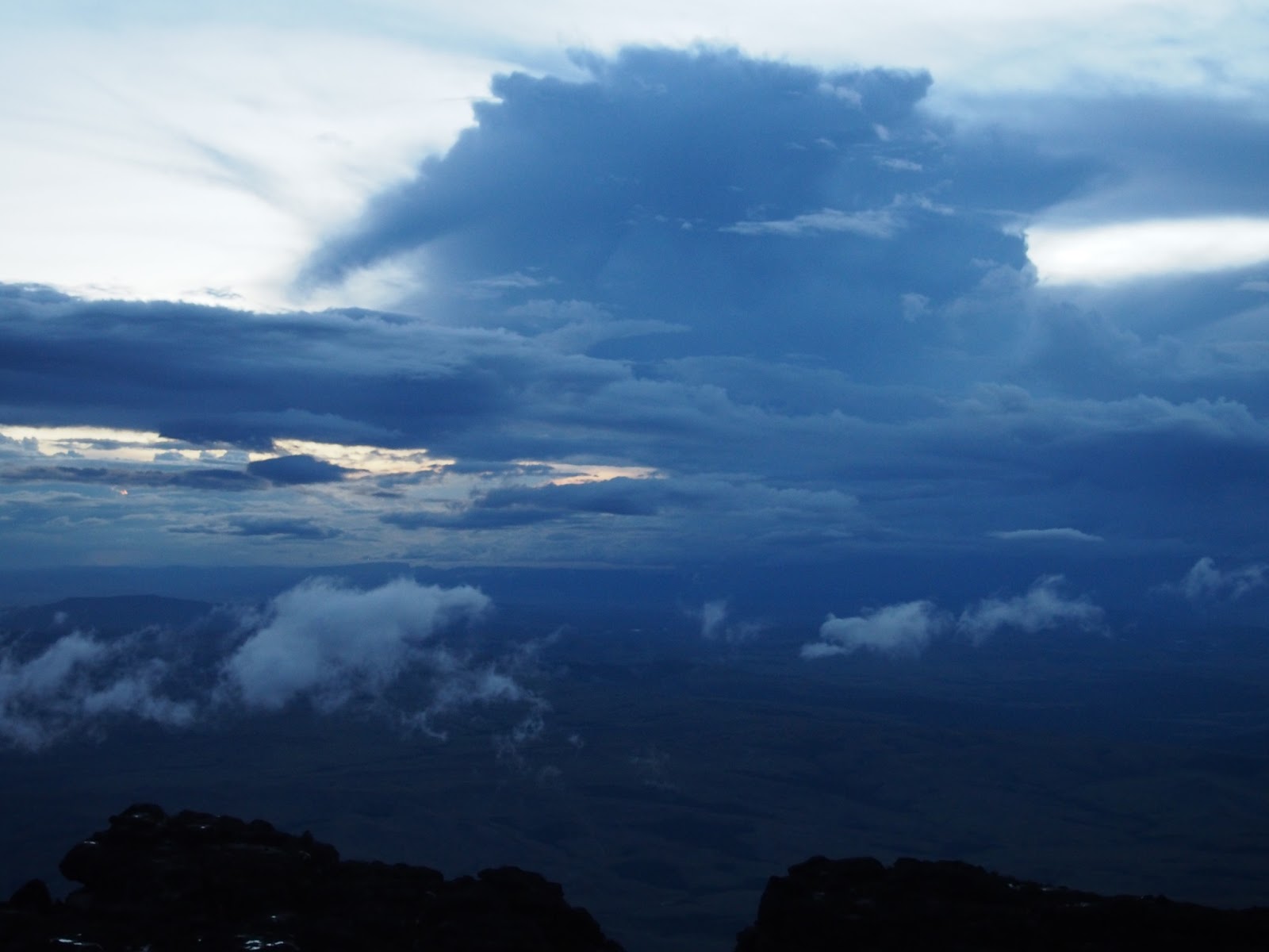 Kamp yerine ulaşmamız yaklaşık 1 saatimizi aldı. Muhteşem bir görsel şölen içinde Roraima Dağı'nın tepesinde yaklaşık 1 saat yürüdük ve artık kamp yerimize ulaşmıştık. Tabii ki alman arkadaşlar her zaman ki gibi bizden yaklaşık 1,5-2 saat önce kamp yerine ulaşmışlardı. İnsan değil makine bunlar... Ancak öğrendik ki onlar da şelaleyi geçerlerken bizim gibi ıslanmışlar. Bir arkadaşın uyku tulumu sırılsıklam olmuş. En kötüsü de bu olsa gerek. Dağın tepesinde hava sıcaklığı hissedilir derecede düştü ve gece de soğuk olacağı kesin. Uyku tulumu olmadan uyumak neredeyse imkansız.